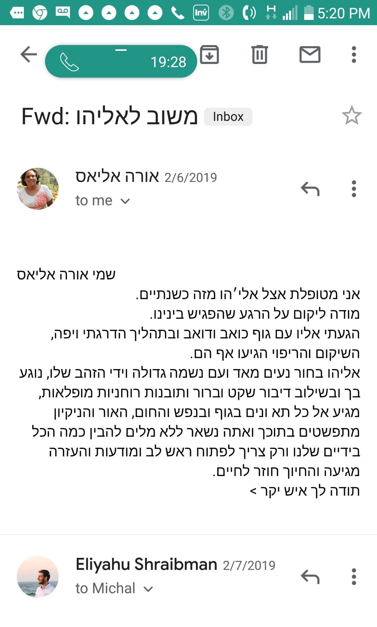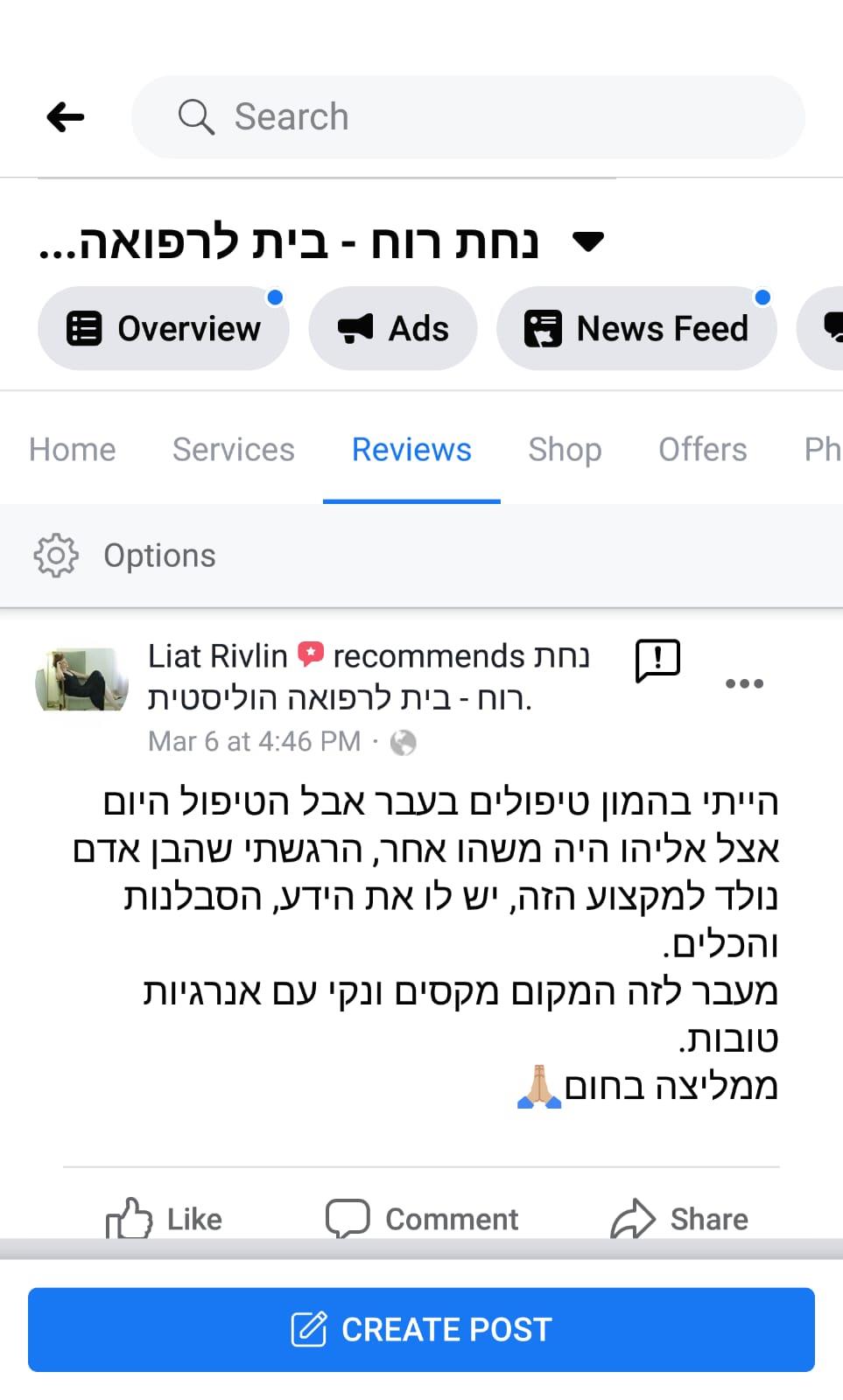 זוג נשוי ומטפלים עם ניסיון טיפולי של 15 שנים ביחד. הקמנו יחד את מרכז הטיפולים – נחת רוח – בית לרפואה הוליסטית, הממוקם בלב תל אביב, עם חזון משותף: יצירת מודעות לבריאות הוליסטית וטיפול במגוון רחב של בעיות: פיזיות רגשיות ונפשיות בדרכים טבעיות, מטיבות ומשלימות את הרפואה הקונבציונלית.